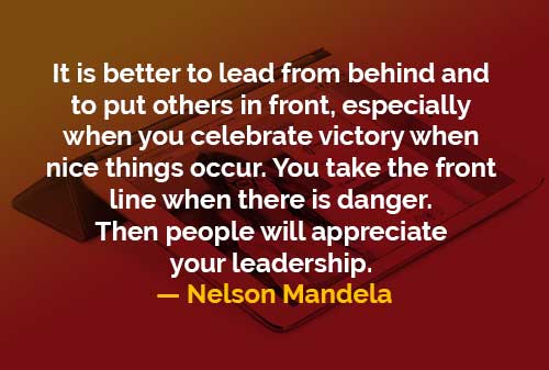 It is better to lead from behind and to put others in front, especially when you celebrate victory when nice things occur. You take the front line when there is danger. Then people will appreciate your leadership.